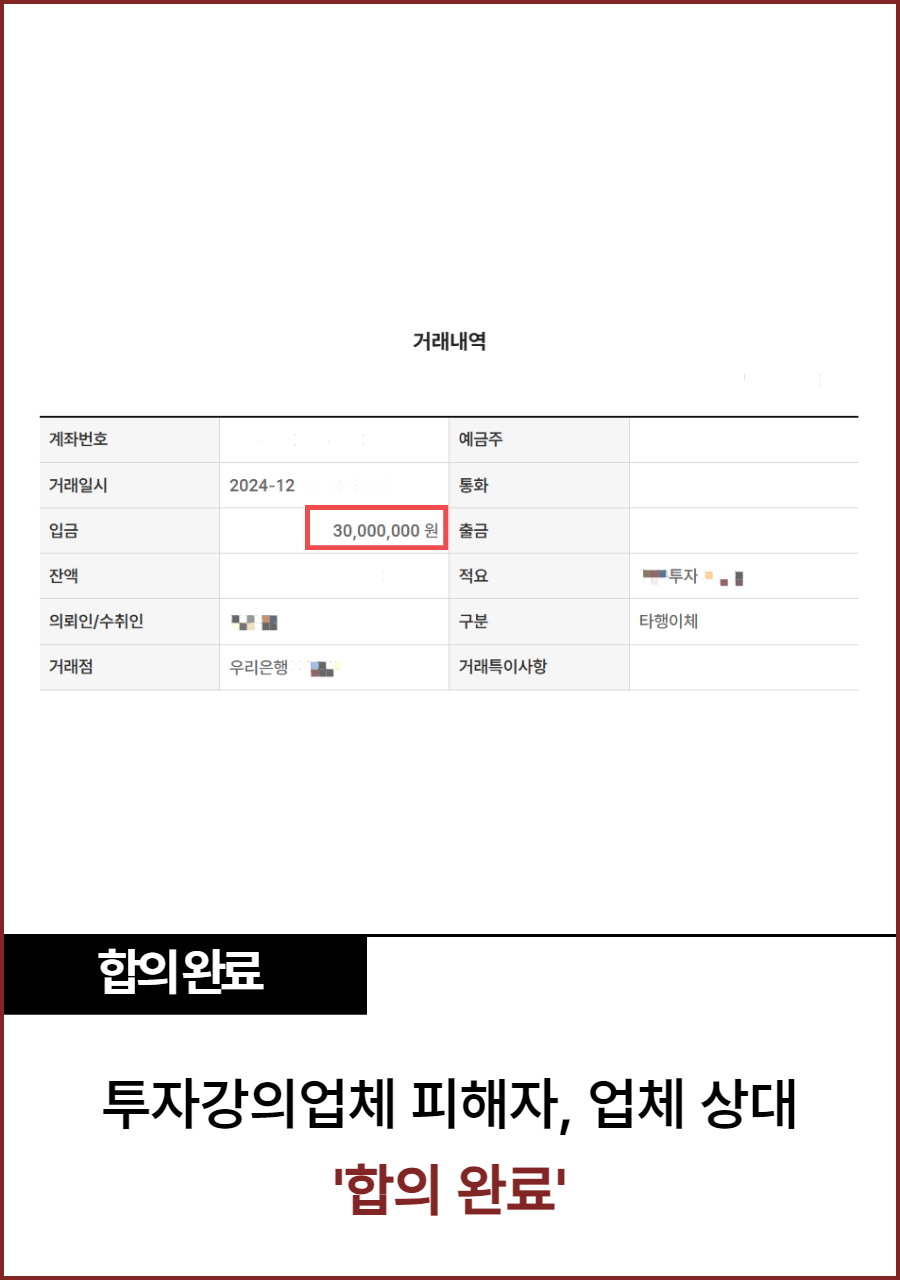 본 사건은 투자 강의 사기 피해로 인한 '민사상 합의' 사건입니다.