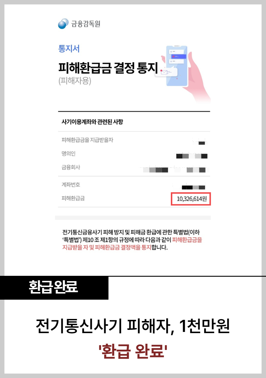 🚩환급 성공 - 전기통신사기 피해자 환급 성공 사례