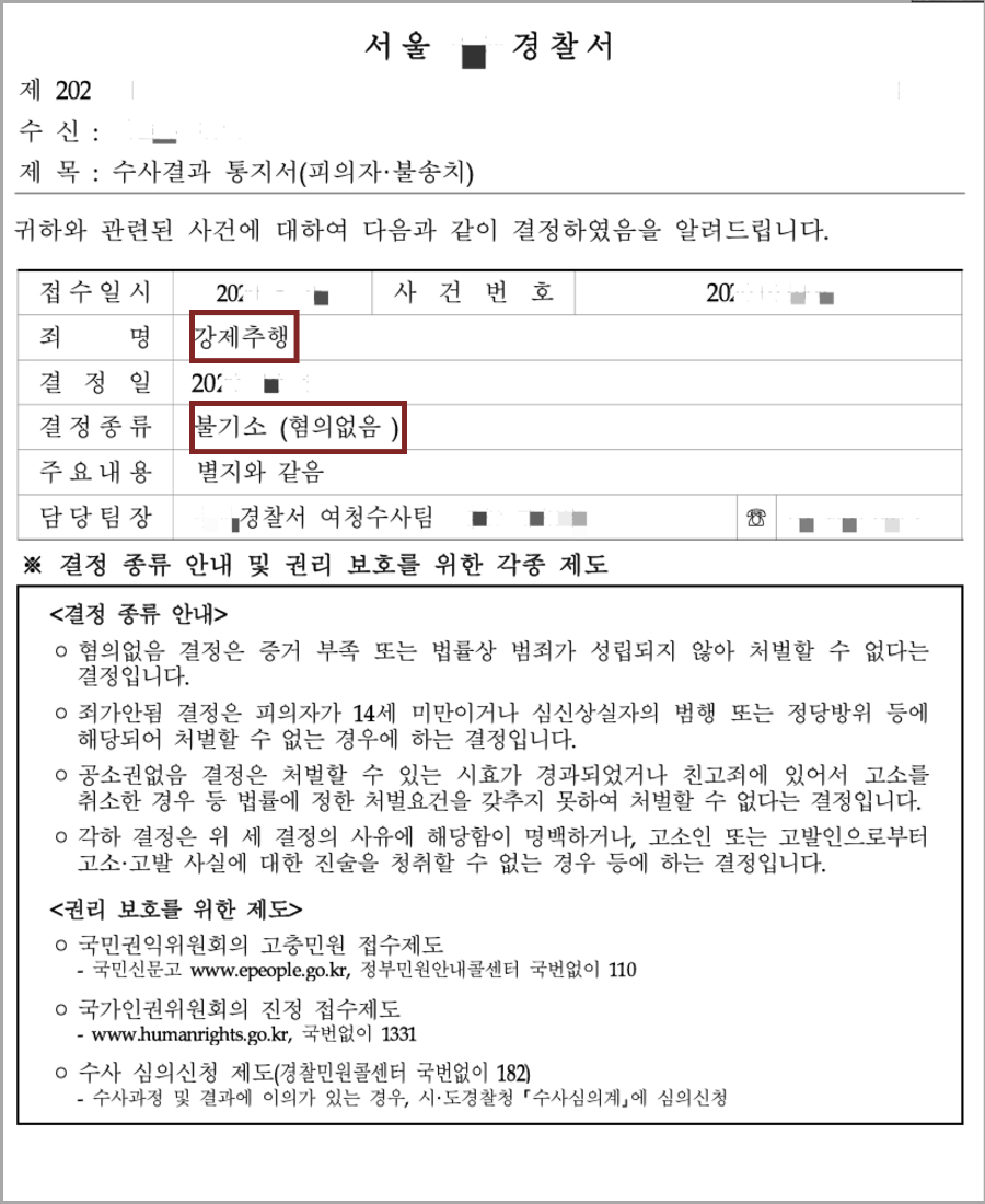 이처럼 억울한 상황에서 불기소 결정(혐의 없음)으로