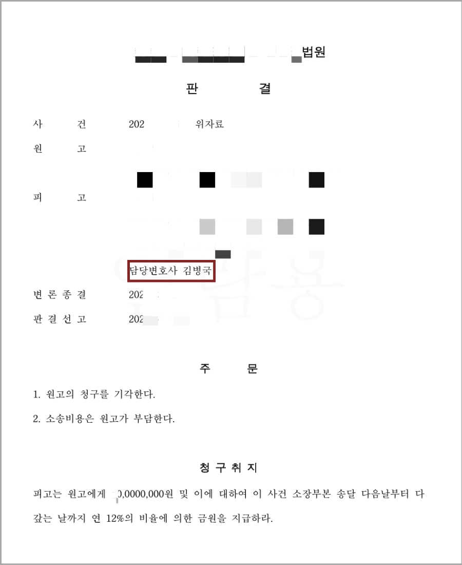 오늘 소개할 사례는 바로 그런 상황에서 전부기각 판결을 이끌어낸 케이스입니다.