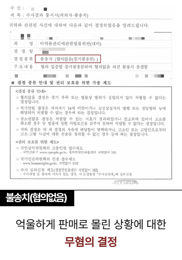 불송치 결정을 받을 수 있었습니다.