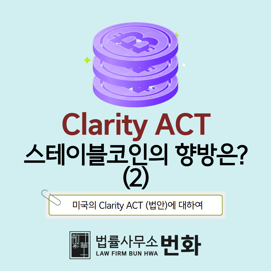 2025년 7월, 미국 하원은 디지털 자산 규제의 큰 전환점이 될 H.R.3633 Digital Asset Market Clarity Act of 2025를 통과시켰습니다. 이 법은 블록체인과 암호화폐 시장에서 오랜 기간 논란이 되어왔던 SEC(증권거래위원회) vs CFTC(상품선물거래위원회) 관할 문제를 정리하고, DeFi, 스테이블코인, P2P 거래 등 다양한 구조를 제도권 안으로 끌어들인다는 점에서 획기적인 전환점으로 평가받고 있습니다. 미국 정부는 이제 암호화폐를 단순한 자산이 아닌, 금융 생태계 내 합법적 자산으로 편입하려는 움직임을 보이고 있는 것이죠. 이번 글에서는 Clarity ACT의 주요 내용, 의의, 그리고 이 법이 불러올 변화까지 변호사가 직접 한 번에 정리해드립니다. 실제 내용은..